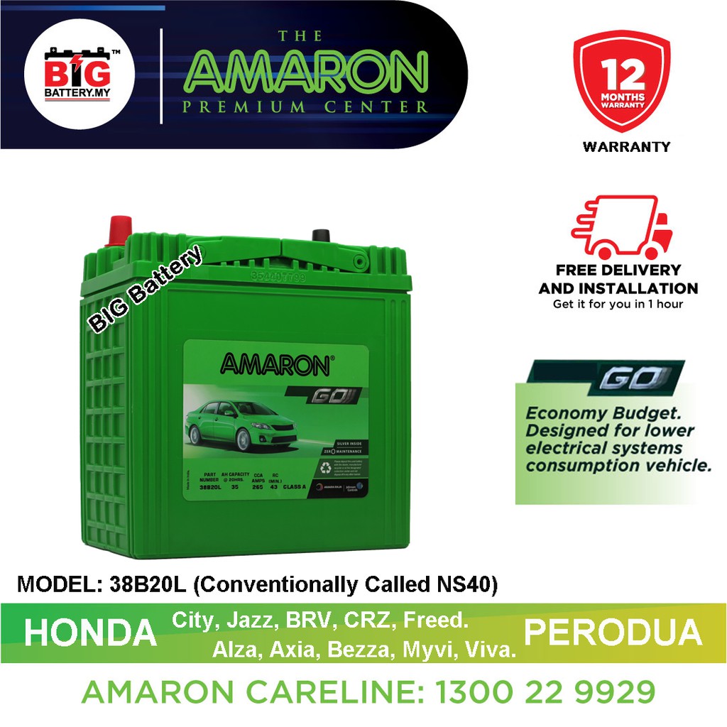 Amaron Go Ns40 Car Battery For Perodua Myvi, Alza, Viva via shopee.com.my